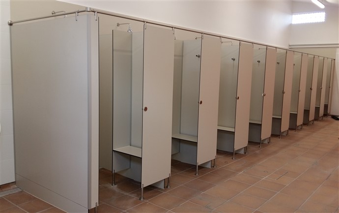 En ambdues obres s’han instal·lat models de cabines sanitàries molt similars. La diferència radica que el model i-525 incorpora barra superior estabilitzadora quadrada de 25×25 d’alumini mentre que el model i-534 incorpora barra superior estabilitzadora circular amb pinces per suportar el panell amb el perfil superior.
